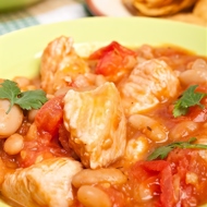 Add the canned tomatoes, beans, spices, and parsley. Simmer for 20 minutes. Pour over the chicken and serve.
