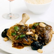 Chicken with tomatoes, prunes, cinnamon, and wine