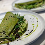 Chickpea Crepe with Green Vegetables and Cashew Sour Cream