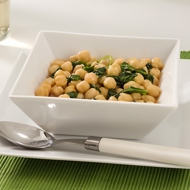 In a large skillet, heat the olive oil over medium heat. Add the chickpeas and sauté for 2 minutes.