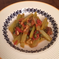 Wash the tomatoes, chop them, and add them to the chicory. Cover with a lid and stew for 5 minutes.