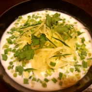 Add the chopped green onions and spices to the kefir.