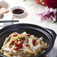 Thinly slice the cabbage to make about 6 cups. Remove seeds from the chili and slice it thinly.