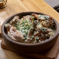Chkmeruli Chicken is a traditional Georgian dish featuring tender chicken cooked in a rich, creamy garlic sauce. It's typically served hot, making it a comforting meal perfect for family gatherings or cozy dinners. This dish is best enjoyed with a side of fresh bread to soak up the delicious sauce.