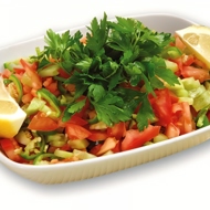 Prepare a shallow, flat dish for the salad. While we are used to serving salad in a deep round bowl, in Turkey, it is usually presented in a low oval dish, which may even be metallic. The salad is placed in the center of the table and eaten with spoons directly from the dish. The salad should be slightly spicy. You can adjust its spiciness by the amount of fresh hot and dried red pepper used. This salad pairs wonderfully with meat dishes, especially lamb, and also with poultry. It is a must-have accompaniment to all kebabs and grilled dishes.
