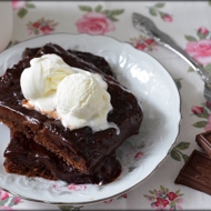 Dissolve the remaining sugar and cocoa in 450 ml of boiling water, gently pour into the dish. Bake for 25-30 minutes – the puddings should rise and become firm. Serve immediately while the dessert is still warm.