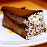 Spread the banana cream on one layer and cover with the other layer. Pour melted dark chocolate or sprinkle with powdered sugar on top. Decorate to taste.