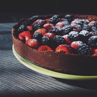 Garnish the finished cake with berries (you can use strawberries, raspberries, or blackberries), mint, and dust with powdered sugar.