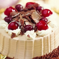 Chocolate Cake with Cream and Cherries