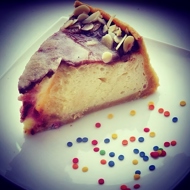 To prepare the sour cream soufflé, separate the yolks from the whites, combine the yolks with sour cream, starch, and 100 g of sugar, and mix. Whip the egg whites until stiff peaks form and gently fold them into the sour cream mixture, then pour the soufflé onto the dough.