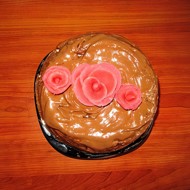 Melt the chocolate in a water bath and pour it over the finished charlotte.