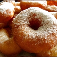 Knead the dough for about 8 minutes. Let it rise for 30 minutes. Punch down the dough to release air and stop fermentation. Let it rise for another 10 minutes. Use a cookie cutter to cut out circles with a diameter of 7.5 cm. Transfer the donuts to a lightly floured baking sheet. Place in a warm, covered area for 30 minutes.