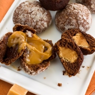 Bake at 356°F for 12 minutes. Do not eat until the cookies have cooled slightly — the caramel inside is hot and liquid.