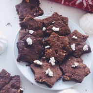 Spoon the dough onto parchment paper. Bake for about 20 minutes at 356°F.