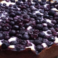 Carefully spread the prepared cottage cheese filling over the chocolate mixture, using a spoon to evenly distribute it across the surface, then sprinkle the blueberries on top.