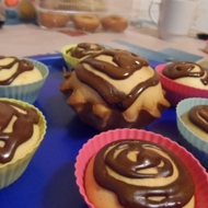 Next, make the cream. Melt the butter and mix it with sour cream, cocoa, and sugar. To beautifully decorate the muffins, pour the cream into a plastic bag, then cut a small hole in the corner — this will allow the cream to flow in a stream.