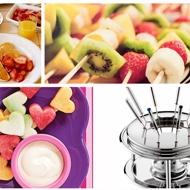 Fruits and sponge cake can be cut into heart shapes or create signature canapés from several ingredients.