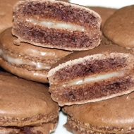 It is advisable to prepare the filling for the macarons—ganache—a day in advance. Ganache is quick to make but takes a long time to set. Chop the chocolate into small pieces. Bring the milk and cream to a boil. Add the chocolate pieces, stirring constantly, bring to a boil, remove from heat, and immediately pour into a deep dish, cover tightly with plastic wrap, and let cool to room temperature, then refrigerate overnight.