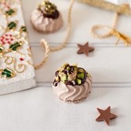 Chocolate Meringues with Orange Chocolate and Pistachio Crumble