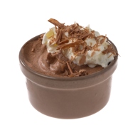 Before serving, garnish the mousse with whipped cream and grated chocolate.