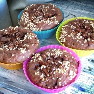 Beat the egg with a whisk, add crushed sugar substitute (if in tablets), then add cocoa, rye flour, oat flour, fiber, starch, salt, and cottage cheese. Mix everything together and add liqueur to taste (for aroma).