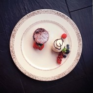 Spread the batter into the molds and bake in a preheated oven at 356°F for thirteen to fifteen minutes. No longer, otherwise the center will cook through and the effect of the melting chocolate oozing from the broken cake will be lost. For the same reason, the cakes should be served immediately, piping hot.