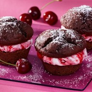Chocolate Muffins with Cottage Cheese and Cherry Filling