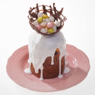 Pour a little glaze into the nest to secure it onto the cake. Allow it to set.