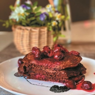 Sauté the cherries with 40 grams of sugar until softened and a nice syrup forms.