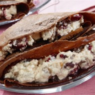 Melt the butter in a pan. Use a ladle to pour the batter in portions and let it spread evenly across the surface of the pan. Fry on each side until golden brown. Sprinkle the hot pancake with grated chocolate and fold it in quarters. You should get 8 pancakes. Dust with powdered sugar and serve with a sauce made of butter and rum or with a filling of cottage cheese with raisins.