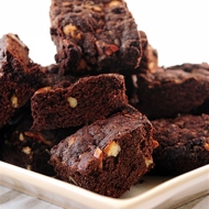Sift the flour and cocoa powder, then add the sugar. Add the softened butter, eggs, and vanilla. Beat everything well. Add the chopped chocolate and lightly crushed walnuts. Mix well.