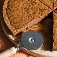 Roll out the dough into a circle 1 cm thick. Place it on a baking sheet lined with parchment paper and prick the dough in several places with a fork. Spread the molasses, cocoa, and a few dollops of butter on top. Let it rest for 1 hour.