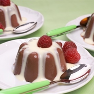 Carefully loosen the pudding from the edges of the mold and invert it onto a serving plate. If desired, drizzle with light cream and garnish with fresh berries.