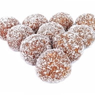 Line a large plate with parchment paper. Take 2 teaspoons of the chocolate mixture and shape it into balls. Place coconut flakes in a bowl and roll the truffles in them, pressing lightly. Arrange on the prepared plate. Refrigerate for 1 hour.
