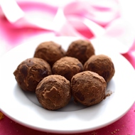 Take the chocolate balls out of the refrigerator. Dip each one once in melted chocolate and immediately toss it in cocoa powder.