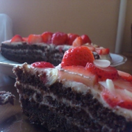 Spread the sour cream frosting on the resulting 3 layers. Let it soak a little.