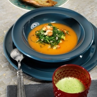 Chowder with shrimp, crawfish, and Savoy cabbage