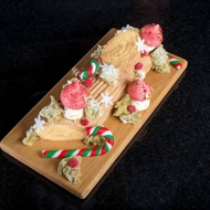 Use a fork to create a natural bark-like texture on the cream. Then, let your creativity run wild: make toadstools from meringue, scatter red currants on the log, and create moss from torn sponge cake tinted with pistachio paste.