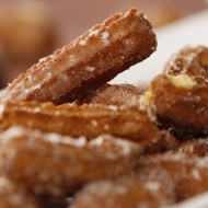 In a deep pot, heat the vegetable oil for frying and pipe the dough into the oil in 10 cm long strips.