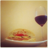 Cover with the other half of the ciabatta. Cut into several pieces, depending on the size of your ciabatta; I usually cut it in half and then diagonally, resulting in four triangles.