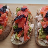 Before serving, garnish the ciabatta with a sprig of basil. Enjoy your meal!