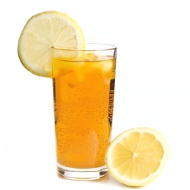Mix the syrup with the orange juice and the juice from 1 lemon. Pour into a large pitcher.