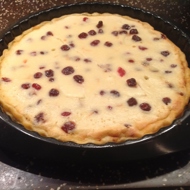 Drain the cherries and sprinkle them on top of the batter. Gently press down.