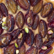 Pour the flour mixture over the plums and place in an oven preheated to 374°F. Bake for about 35 minutes. After baking, let it cool for 15 minutes, sprinkle with powdered sugar, and serve.