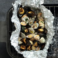 Light the fire under the barbecue. Place the bundles with the shellfish on the grill and cook for 10 minutes. Serve immediately.