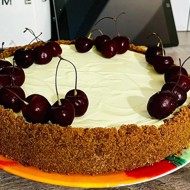 You can serve the cheesecake as is or, if desired, decorate it with almond flakes or nuts.