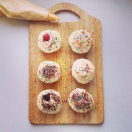 Pour the batter into cupcake liners, filling them 2/3 full, as the batter will rise during baking. Place in a preheated oven at 356°F for about 10–15 minutes. Check for doneness with a toothpick (the cupcakes should be white; if they start to brown, they are drying out).