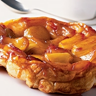 Grease a pie dish with butter and arrange the sautéed apples tightly in it, pouring the caramel sauce from the saucepan over them.
