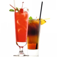 Layer the following in a glass filled with ice: syrup, rum, orange juice, and espresso.