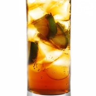 Place ice cubes in a tall glass and arrange the zest so that one end hangs over the edge of the glass.